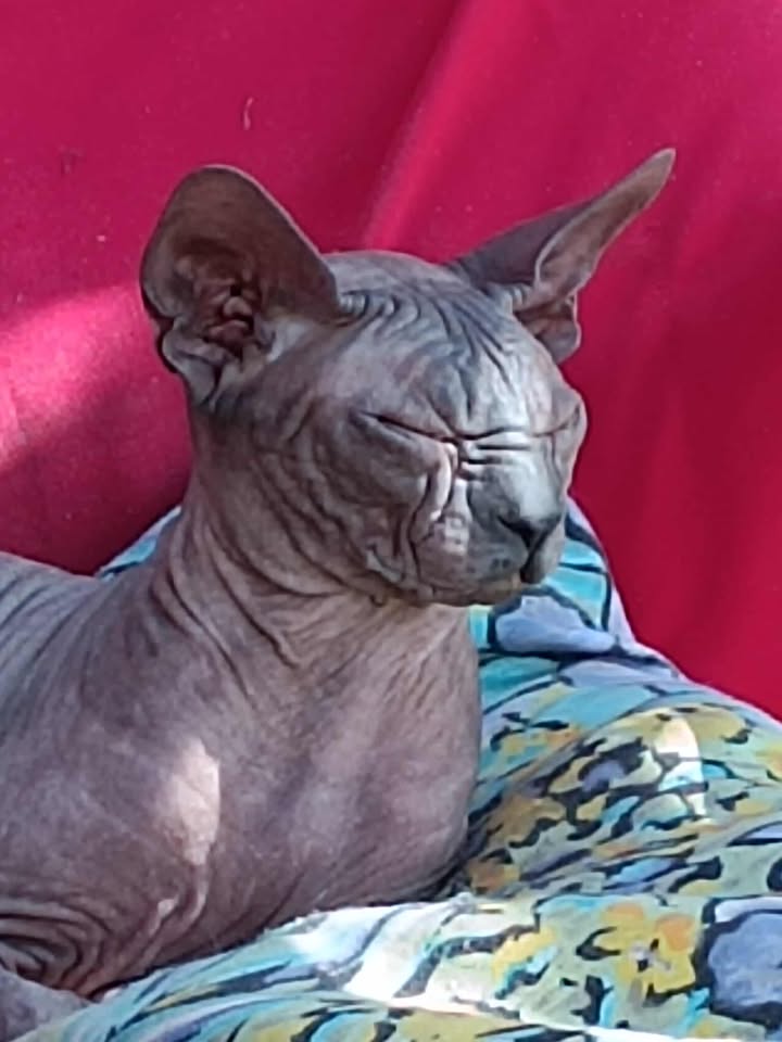 Neypal est un sphynx bleu mink à peau de silicone. Il possède toutes les qualités que je recherche pour être un gentil papa avec un cœur d’or.. Un amour de pot de colle !!